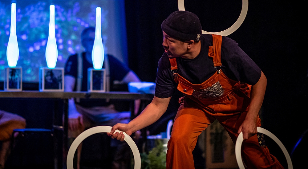 Luminarium is a wordless, visually captivating show that fuses juggling, physical comedy, and object manipulation into a hopeful solarpunk fable. Powered by laughter, teamwork, and the spark of rediscovery, it’s a playful reminder that the future might just be saved—not by brute force or better machines, but by imagination, care, and a really good toss.